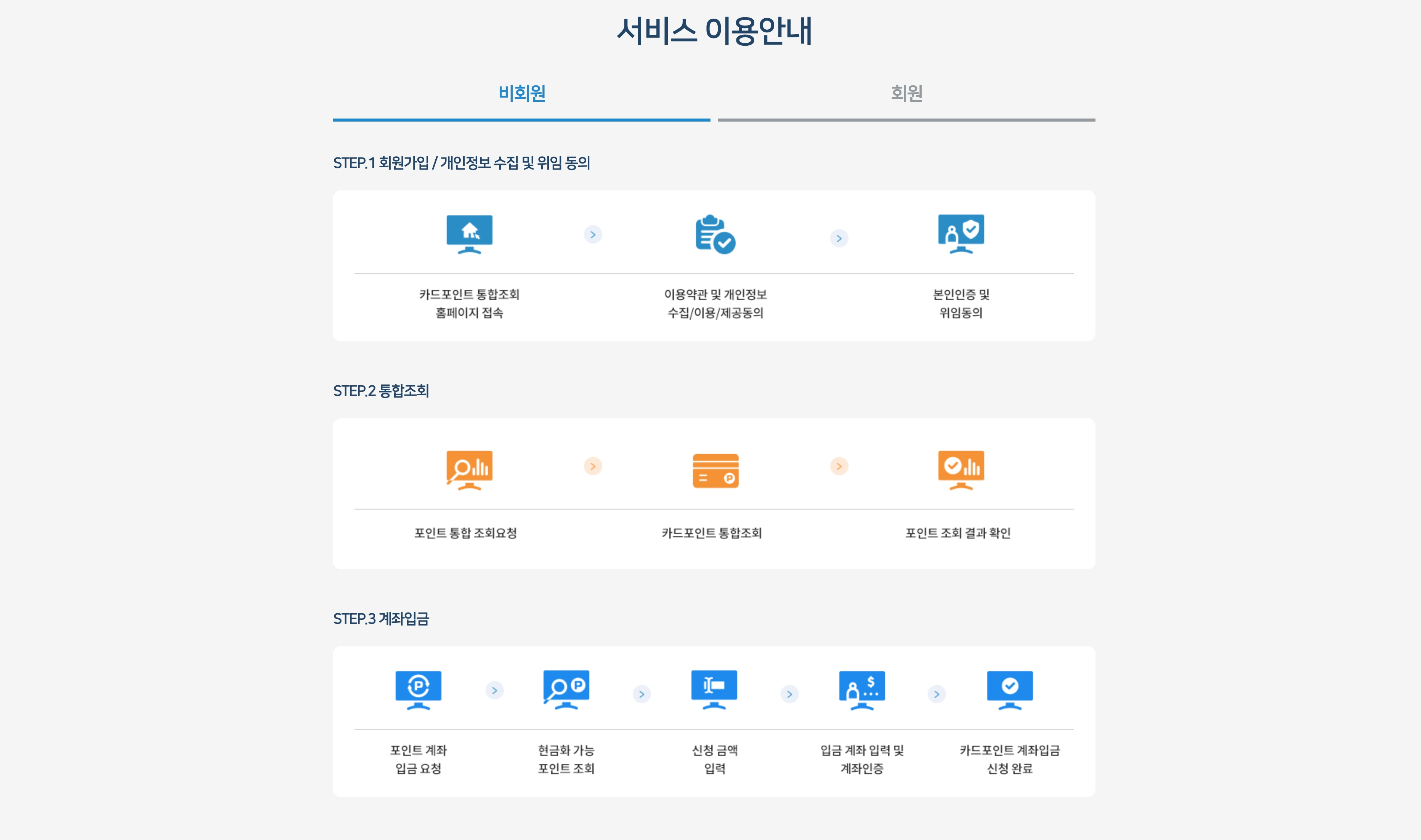 카드포인트 통합조회 서비스에 접속합니다. - 비회원 로그인: